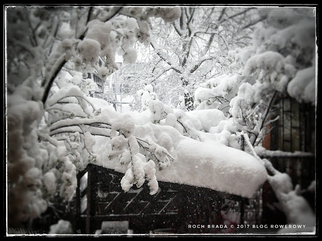 Rower z wiadomych przyczyn zmienił miejsce postoju i awansował z chłodnego garażu do ciepłej piwnicy, ale może niedługo trafi on z powrotem do garażu po to żeby Roch na nim mógł pojeździć. Na zakończenie zdjęcie śniegu.