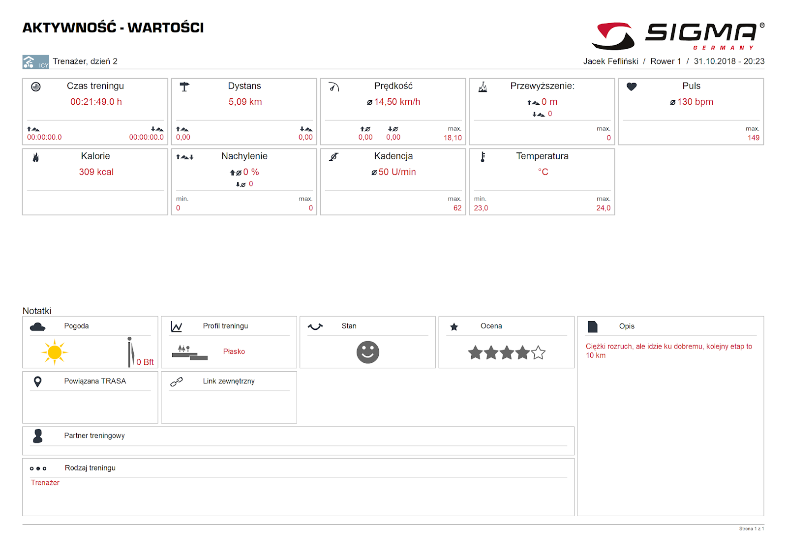Korzystając z tego właśnie dnia Roch z Żonką poszli na krótką przejażdżkę po okolicy albowiem na dłuższy wypad nie było już czasu, a dzień już bardzo krótki jest. Wszystkie lampki wyparowały w dziwny sposób więc przed zmrokiem trzeba było zawinąć się do domu. Jednak pedałowanie na swoich rowerach ma jedną przewagę – ma się sprawne hamulce. Co prawda w rowerze Żonki trzeba parę elementów wymienić, ale na przyszły sezon będzie całkiem niezła maszyna. Może i Rochowi coś z tego skapnie.