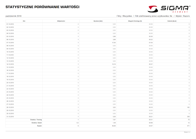Korzystając z tego, że miesiąc się kończy, Roch podsumuje październik, bo o tej godzinie to raczej pójdzie spać niż wsiądzie na rower. Tak więc pogoda w październiku przez większą część miesiąca było okropna, więc Roch za namową Żonki rozstawił trenażer i zaczął pedałować, ale koniec miesiąca zapowiada się wręcz doskonale, a prognozy zapowiadają aż 20°C więc trzeba z tego korzystać ile się da.