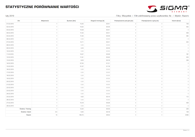 W lutym, to już o cyferkach będzie, Rochowi udało się przejechać całkiem ładną sumkę kilometrów. Bo i był trenażer i był rower i nawet było dalsze pedałowanie w czasie kiedy dzieci były w przedszkolu. Tak więc poniżej obrazek z cyferkami, a Roch już myśli o kolejnym weekendzie i pedałowaniu.