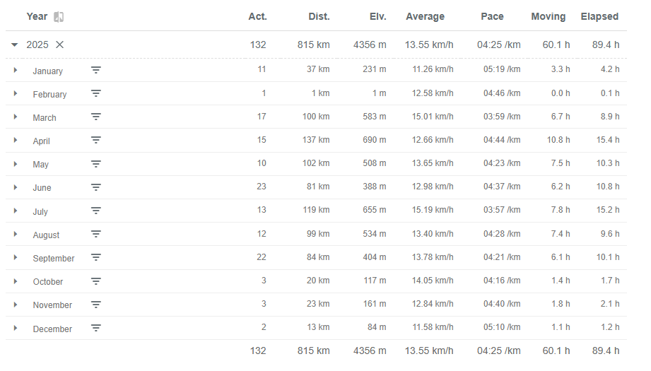 Jeśli chodzi o sam rower, to ta kwestia została mocno zaniedbana. O ile zawsze udawało się zrobić kilka całodniowych wypadów w nowe miejsca, jak choćby Żelazny Szlak Rowerowy, o tyle w minionym roku nic takiego nie wypaliło. Plany były – do dziś w pamięci urządzenia siedzą ślady GPX z Velo Soły i Velo Czorsztyn. Muszą one jednak poczekać na realizację w 2026 roku. Na rowerze Roch jeździł mało, a statystyki „umarły” w połowie roku, gdy Roch zmigrował z Garmina na Samsunga. Pola danych się rozjechały, a jemu nie chciało się w tym grzebać. Nad nowymi statystykami już jednak pracuje i ma nawet co wpisać, bo w nowym roku zdążył już pokręcić korbą.