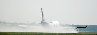 Jednym z ciekawszych, choć groźnych, wydarzeń wczorajszej wizyty na lotnisku było awaryjne lądowanie Boeinga 767-200ER kanadyjskich linii Cargojet Airways, który w Pyrzowicach jest (prawie) w każdą niedzielę. Powodem awaryjnego lądowania był wyciek oleju w jednym silniku. Więcej można przeczytać w artykule Awaryjne lądowanie w Pyrzowicach – Lotnicza Polska. Na szczęście wszystko skończyło się szczęśliwie.